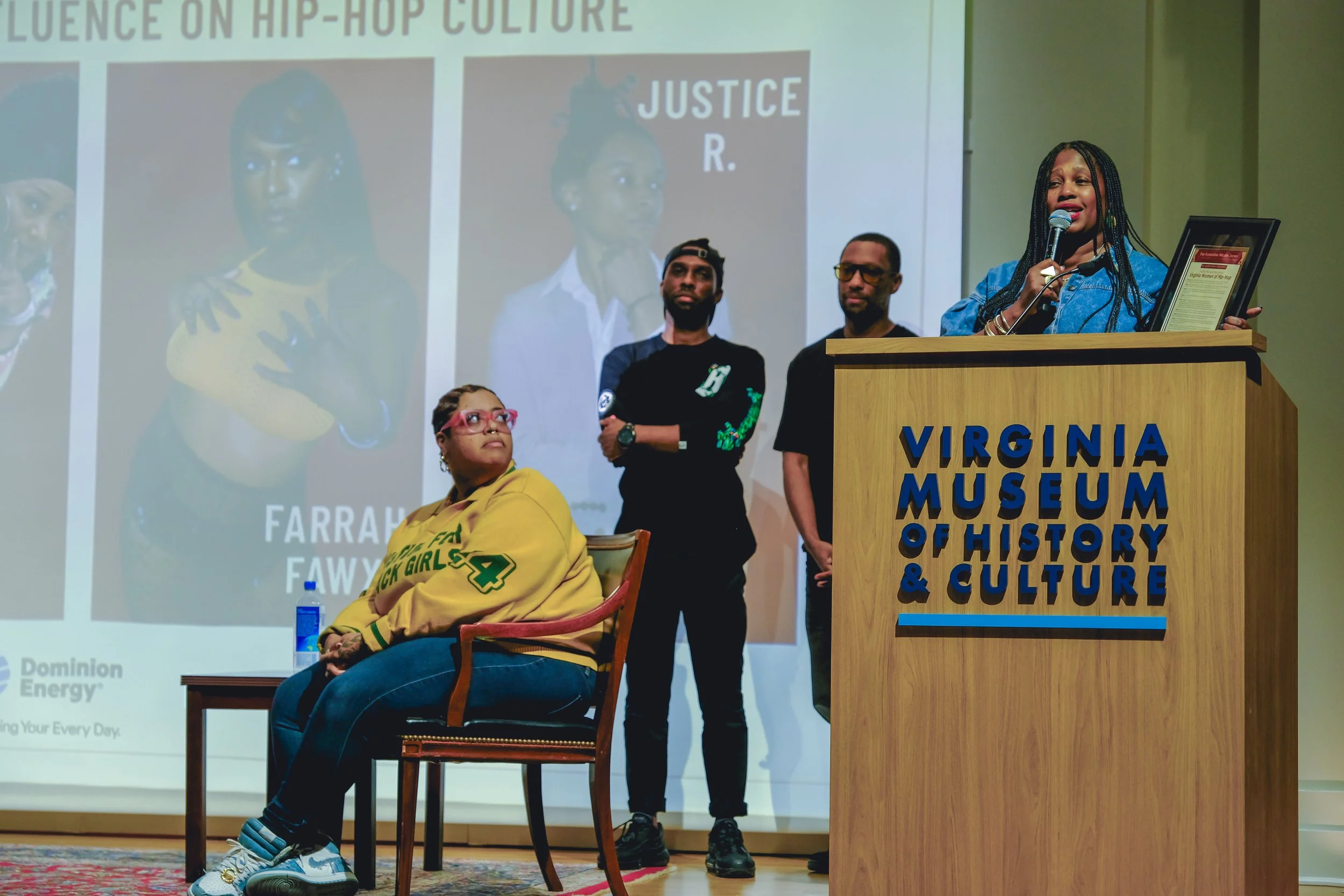 Women's History Month started off strong with the Women's Hip-Hop panel that took place at the Virginia Museum of History & Culture. Trailblazing artists from Virginia, the legendary Lady of Rage, Farrah Fawx, and Justice R., joined Dr. Kay Coghill, of Hoodrat Scholarship, for a panel discussion about Black Women in Hip-Hop.