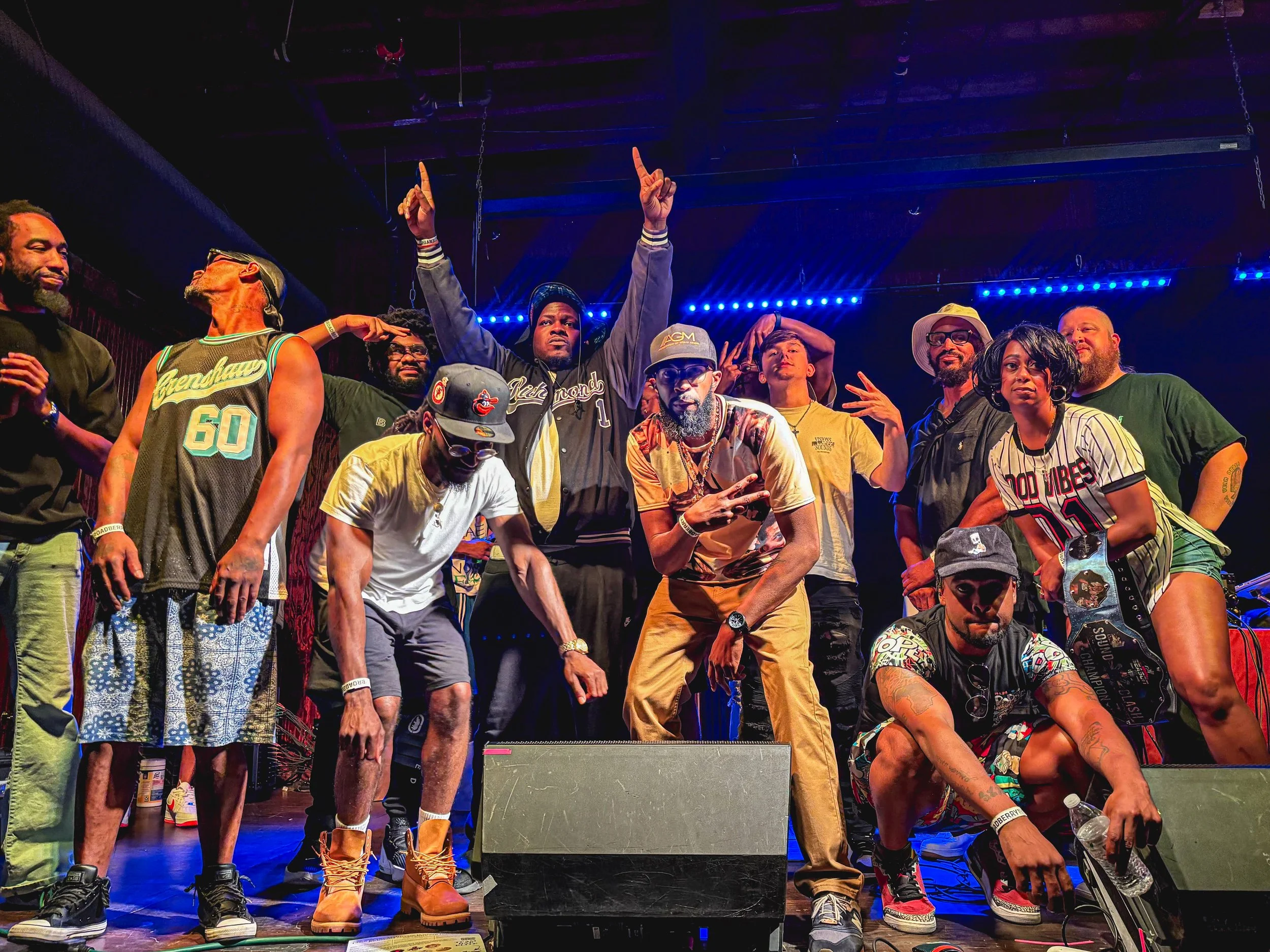 Emcees celebrate the finale of Clash of the Multiverse at Richmond Music Hall on June 28, 2025 in Richmond, VA