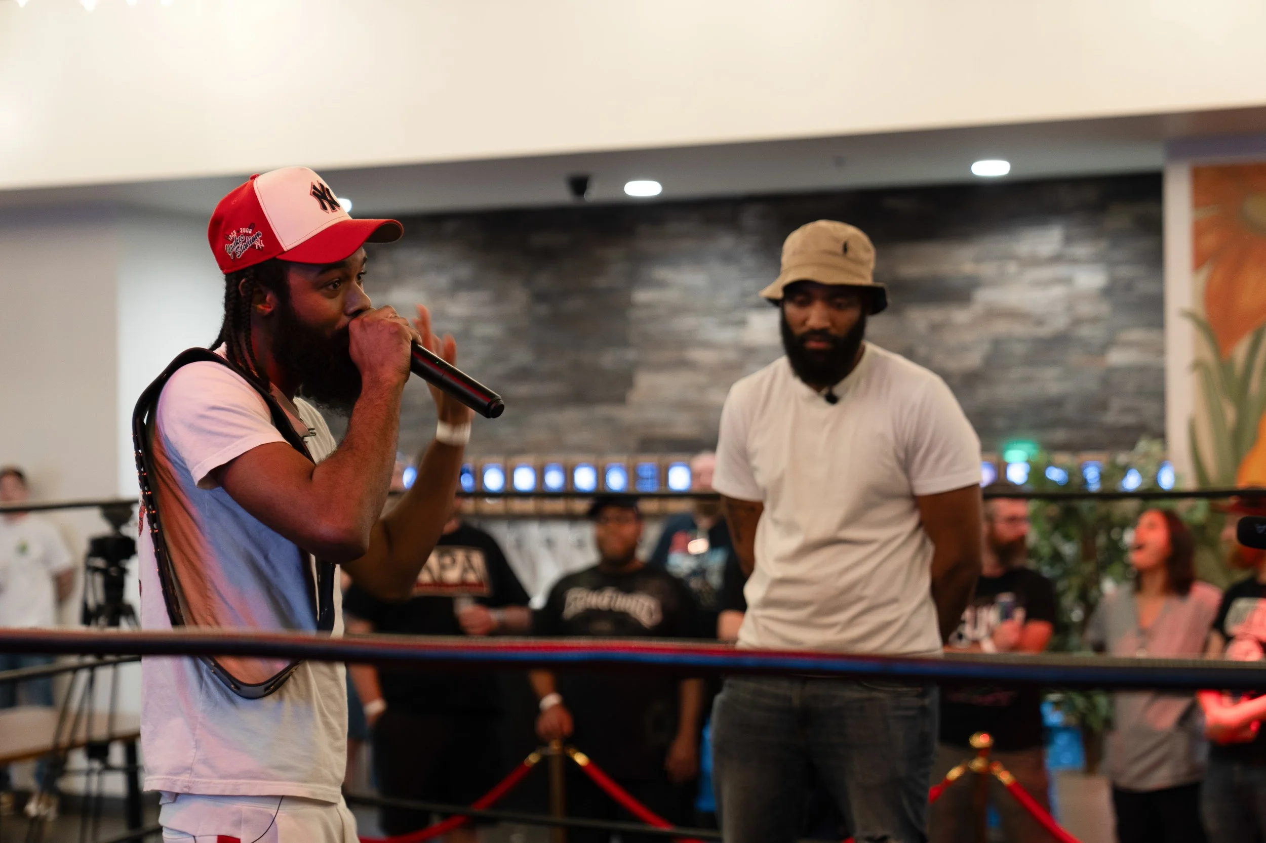 Southpaw Battle Coalition took over the ring, with Radio B. setting the tone for a surprise battle rap showdown. The first matchup featured Tson vs. Introverse, a one-rounder, a notable shift from the typical 3-round bout. The mic levels made parts of the exchange difficult to hear, but the energy was there. Tson, whose ranked Top 5 in Southpaw, seemed unsettled early on, but trudged though, while Introverse delivered his lines with precision. He reminded Son, “I’ve been stone cold since the first battle we instigated.”